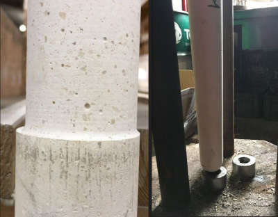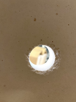 The result of core drill breaking through the internal surface of a feeder tube.