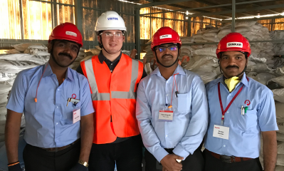 Pyrotek's Rahul Pawar, Maintenance Engineer; Michael Mastor, Global Product Manager; Vijay Hargude, Production Manager; and Dinkar Bankar, Quality Manager, at Pyrotek's flux production facility in Pune, India.