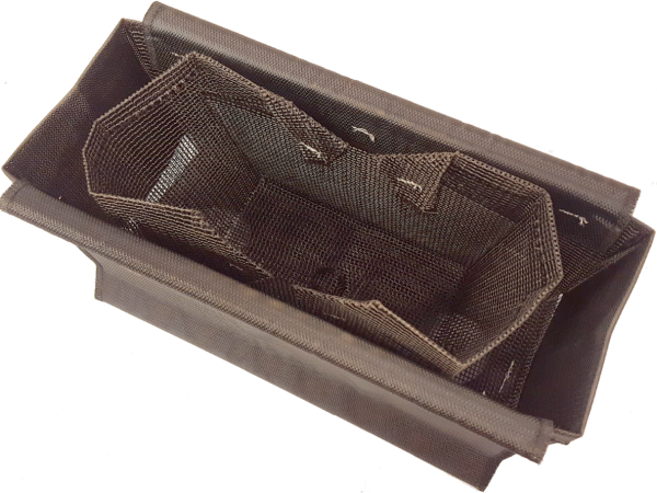 Their design includes a bag, end patches, outer shell, and an optional spout sock or drain holes. Typically, open weave filter fabric is used to make the spout sock and bag, while a strong patch cloth is used to make the outer shell and end patches. But those component and fabric options can be modified as needed for different customer applications.