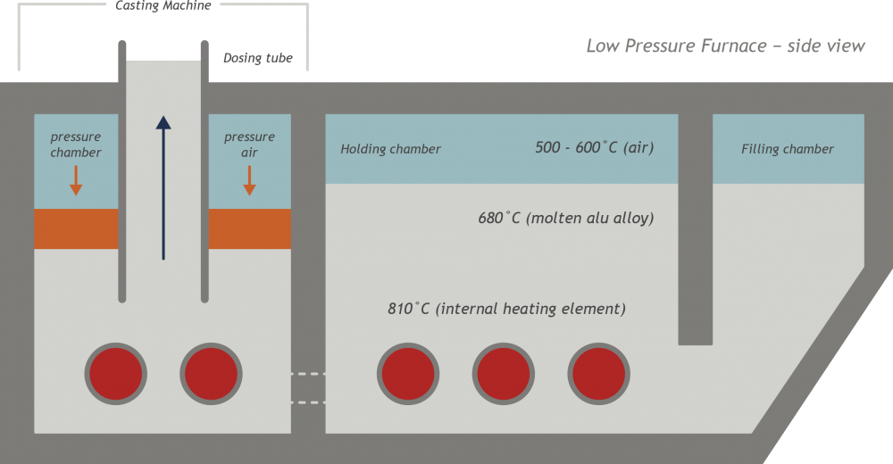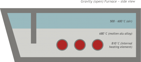 Top-mounted heat elements create higher atmospheric temperatures in the holding chamber, resulting in oxide generation. A thick oxide layer insulates the top of the bath, not allowing the heat to transfer to the metal properly. This increases the temperature of the heating elements and decreases furnace energy efficiency. Additionally, the resulting oxide growth will damage the furnace body and heating elements.